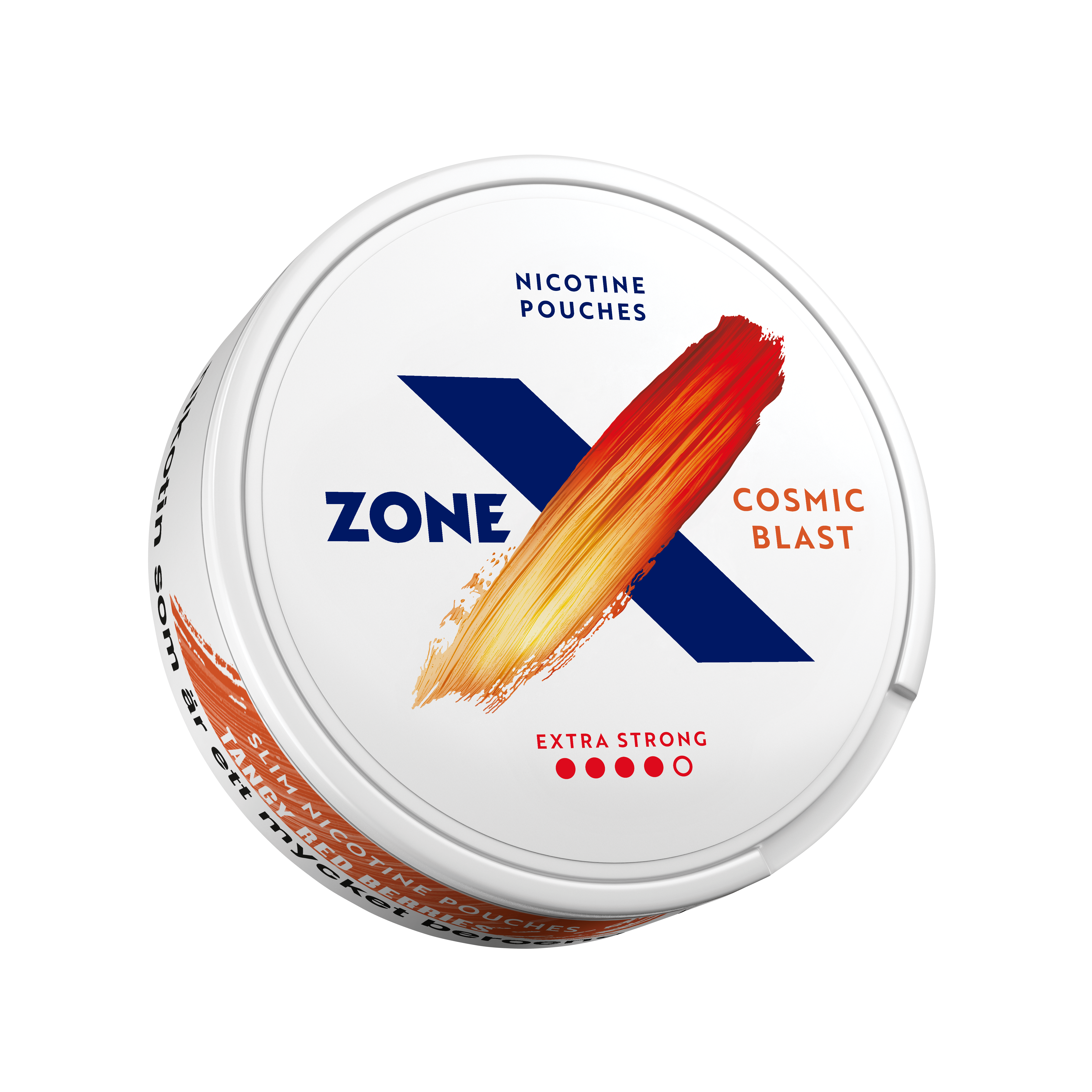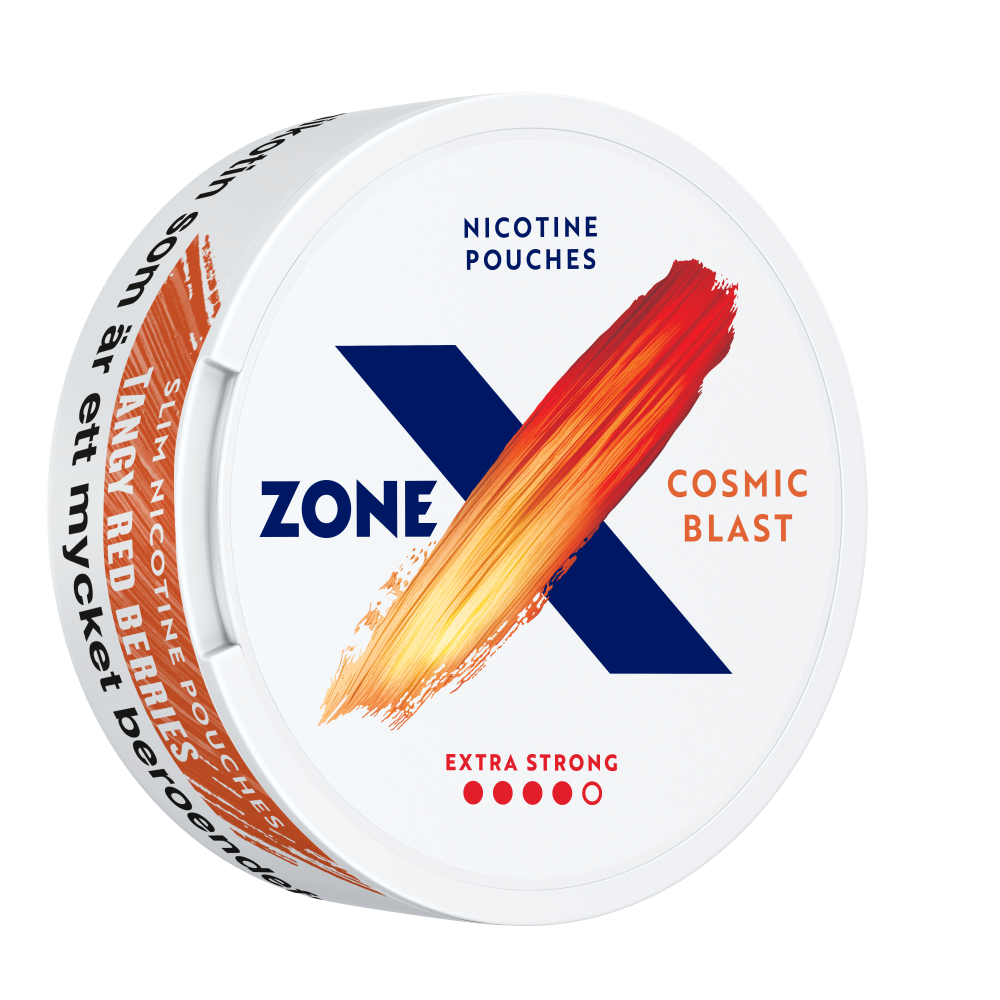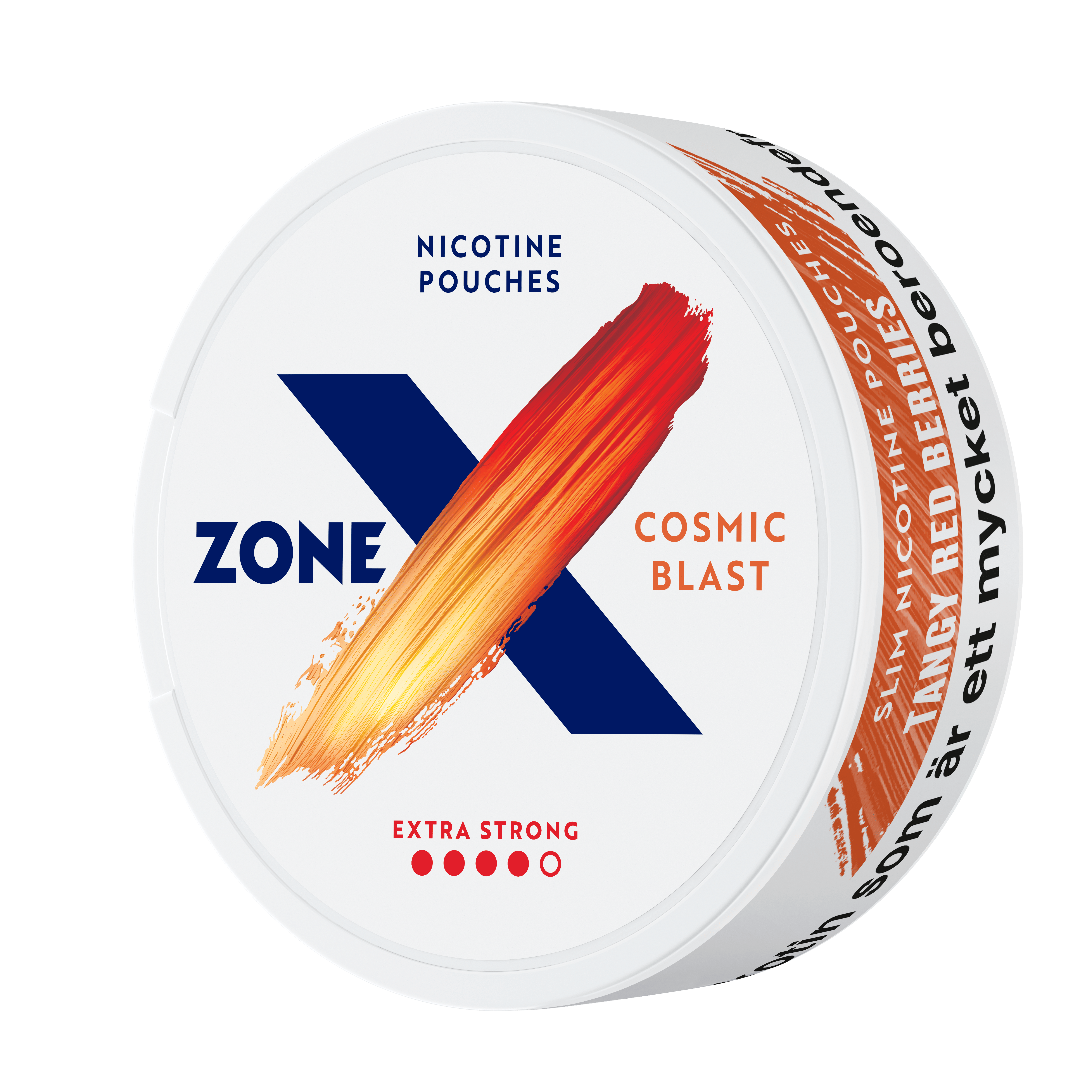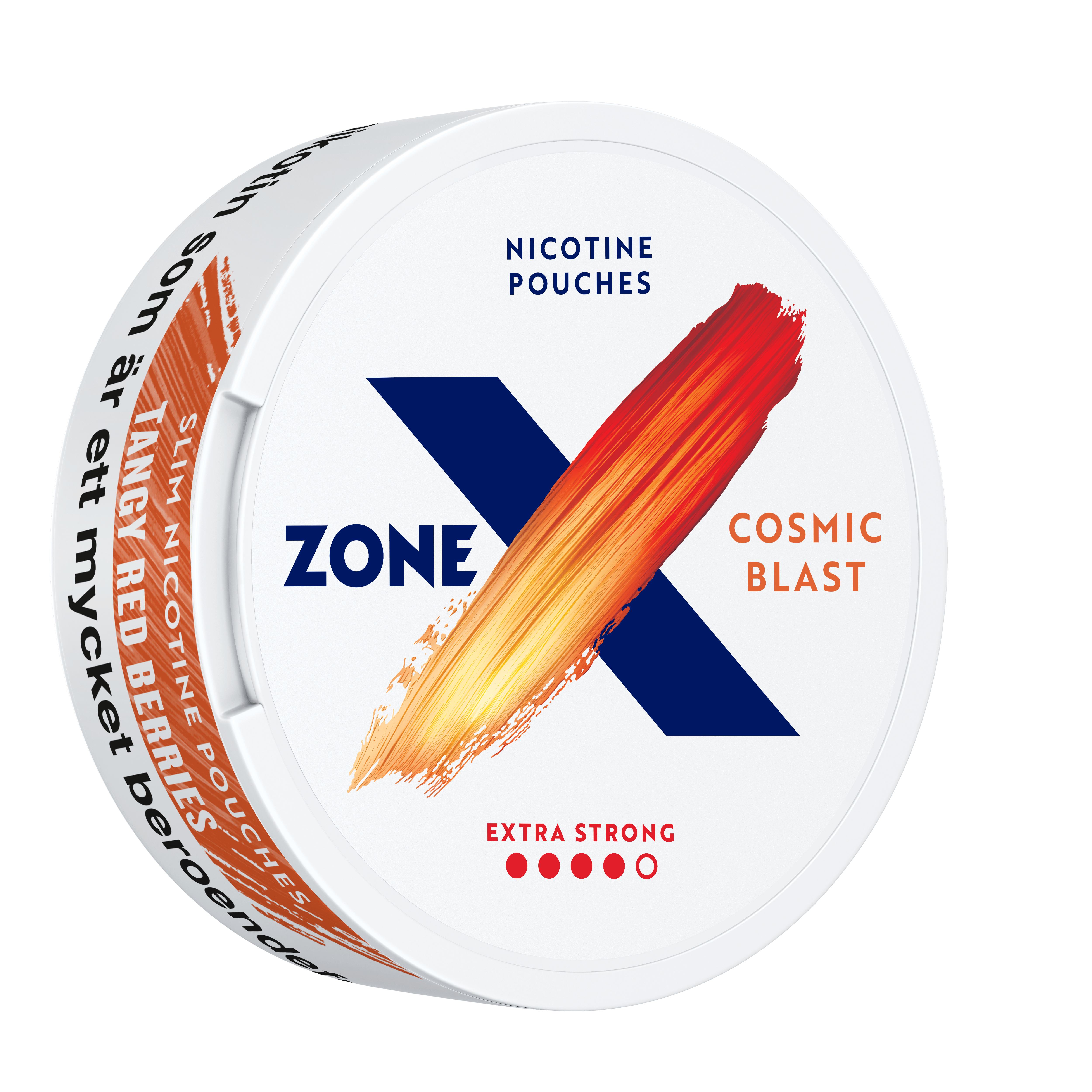 - Info: ZONE X Cosmic Blast Extra Strong har en smak av syrliga röda bär och vanilj.