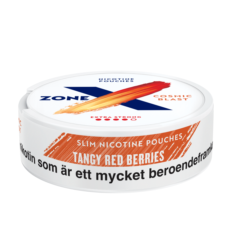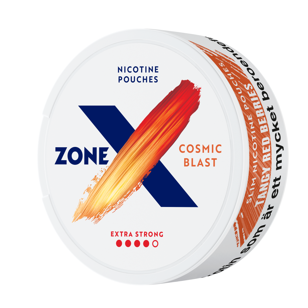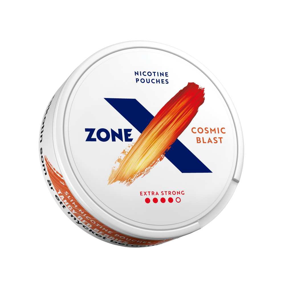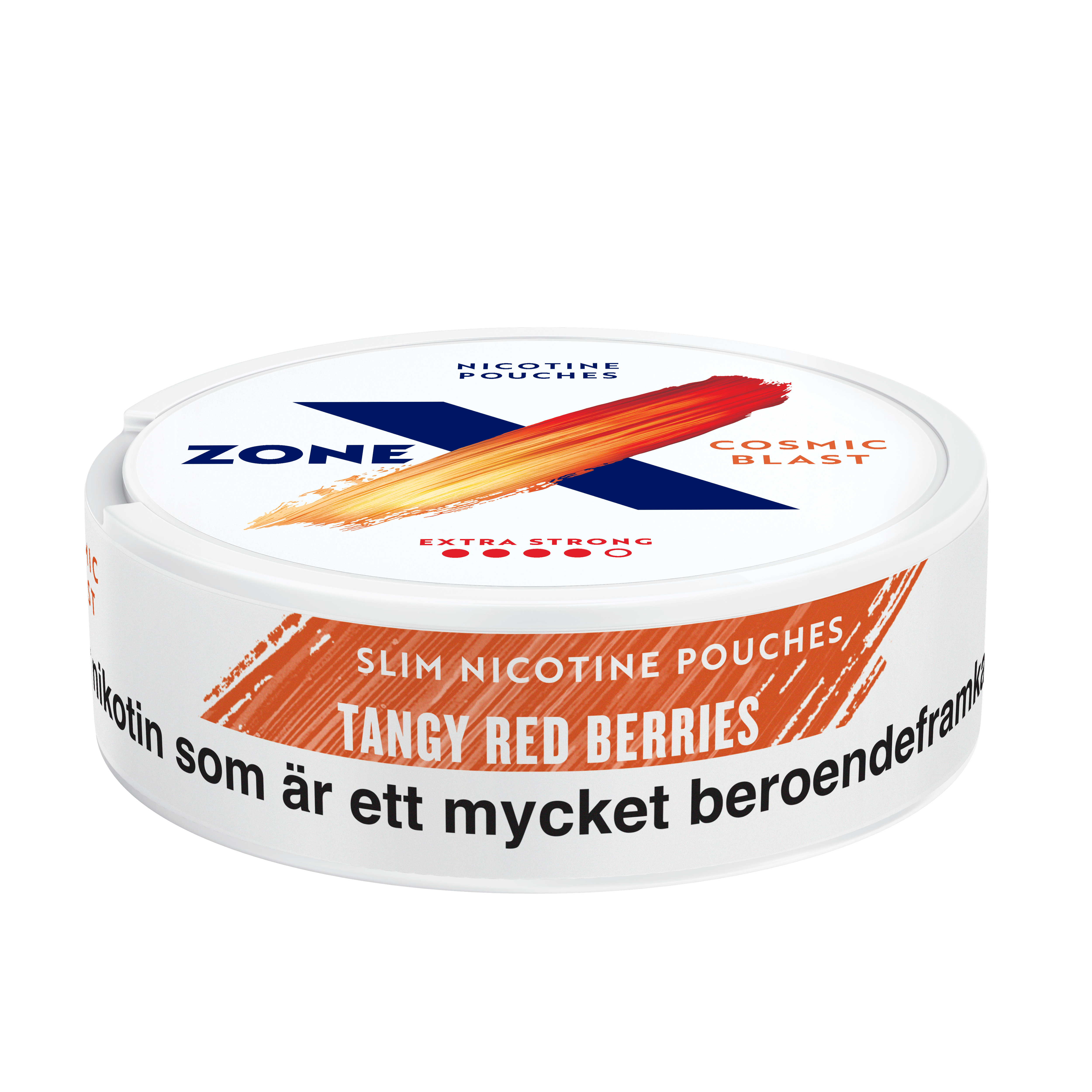 - Info: ZONE X Cosmic Blast Extra Strong har en smak av syrliga röda bär och vanilj.