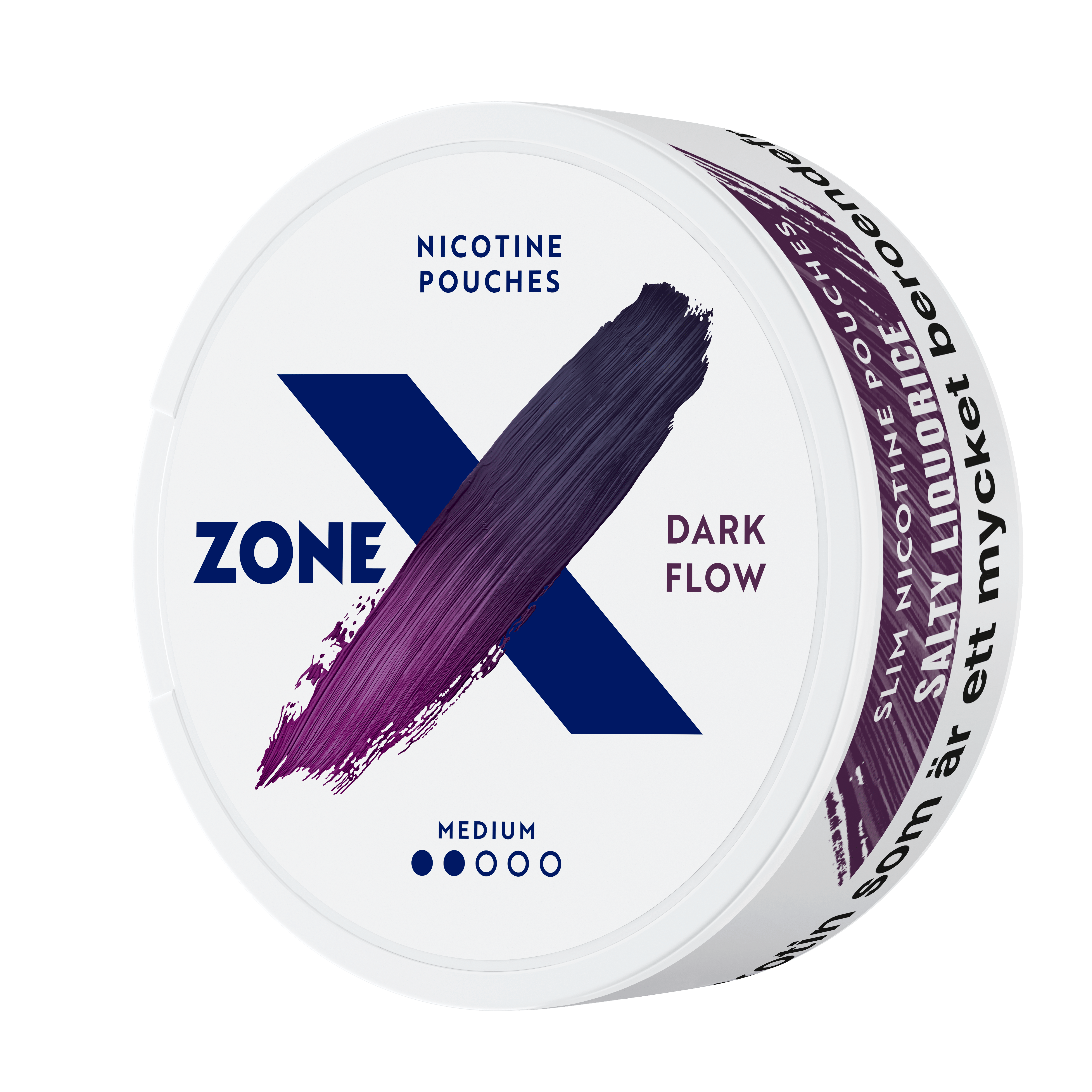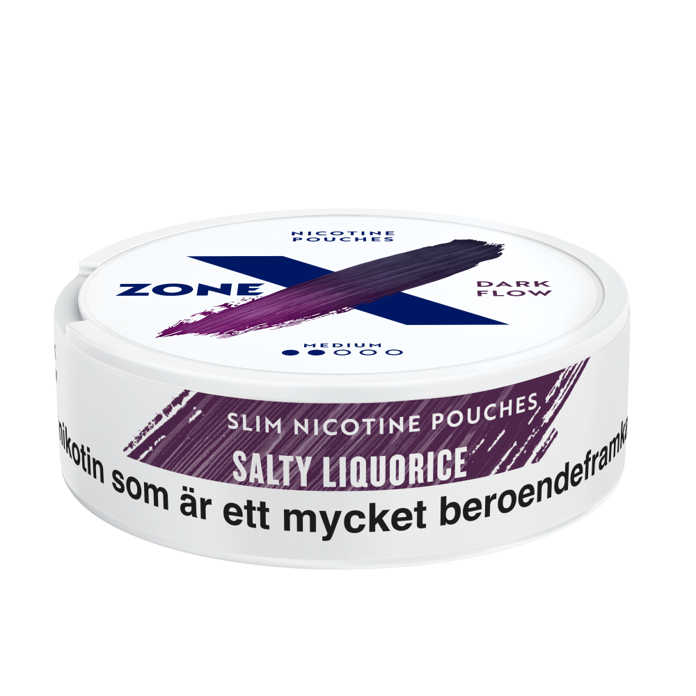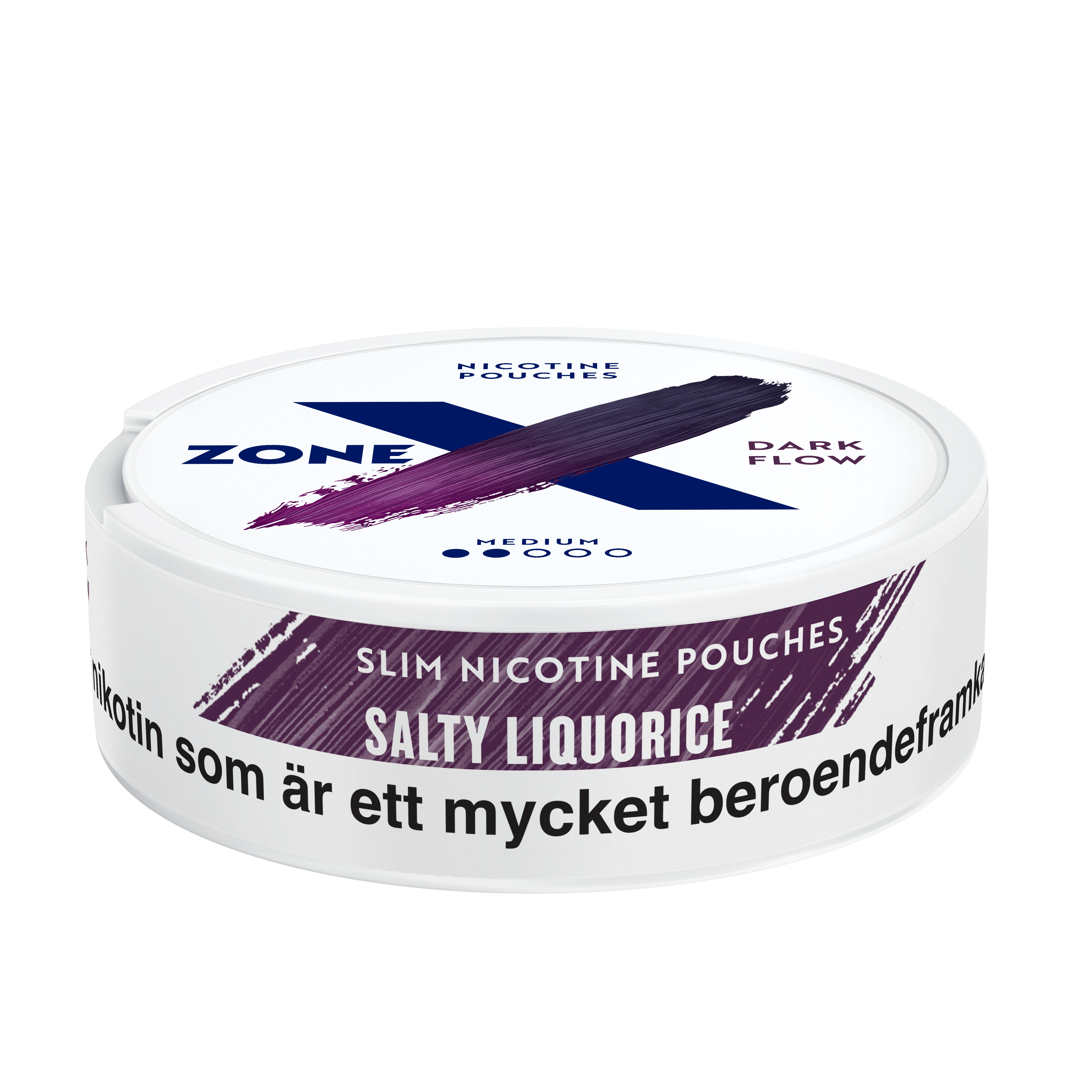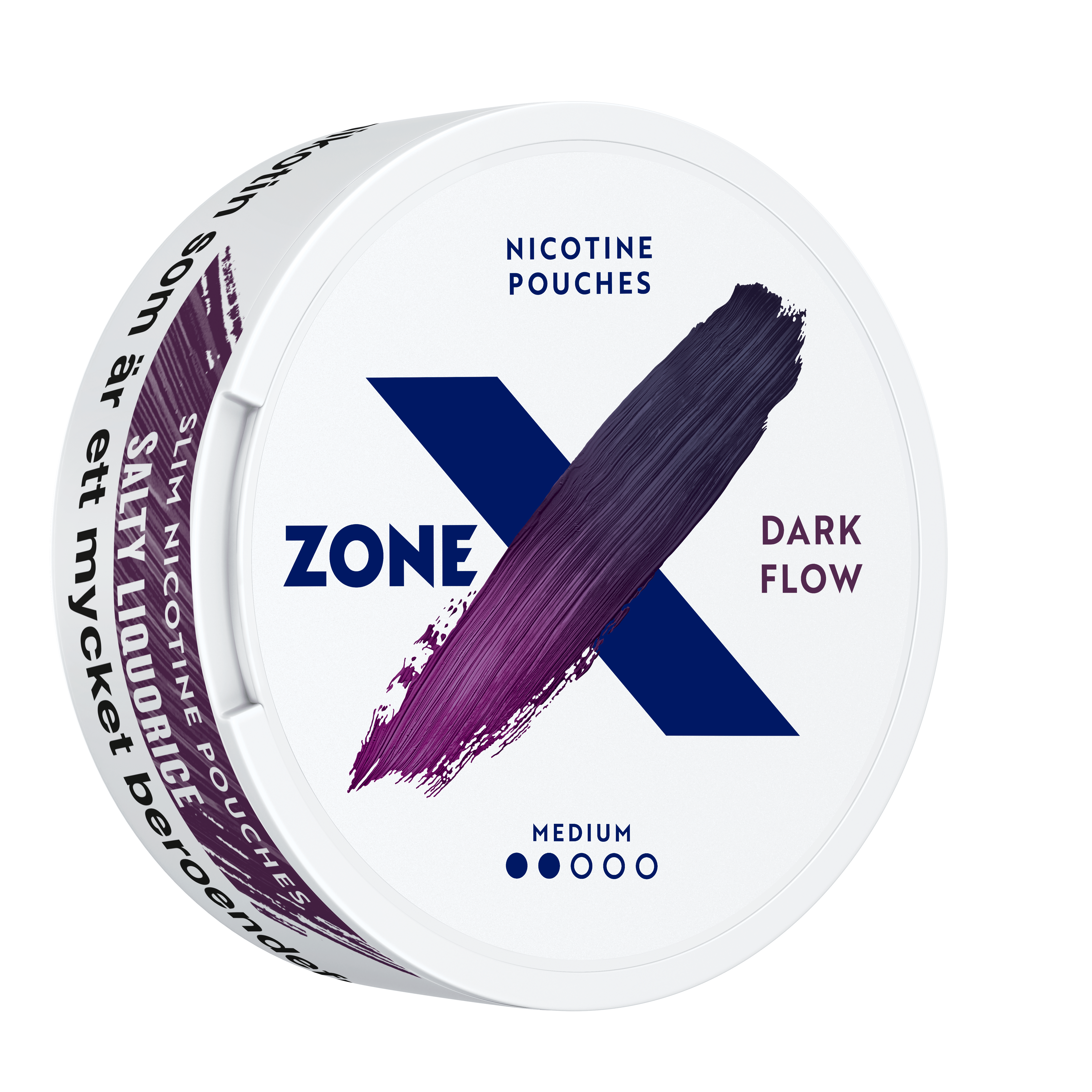 - ZONE X Dark Flow med nordisk lakrits som först ger dig en intensiv salt smak och sedan övergår i en lite mjukare och sötare smak med tiden, med ett milt sting.