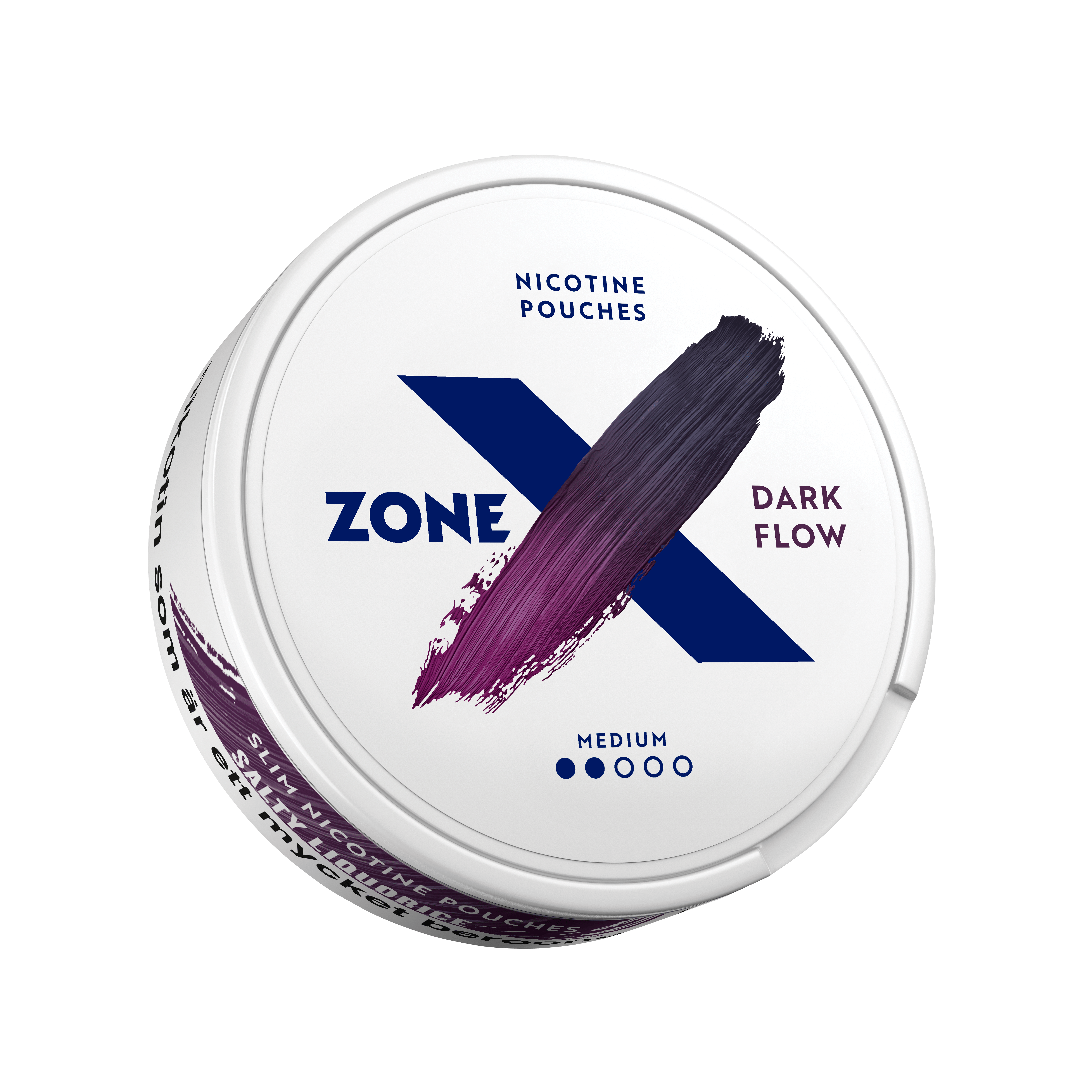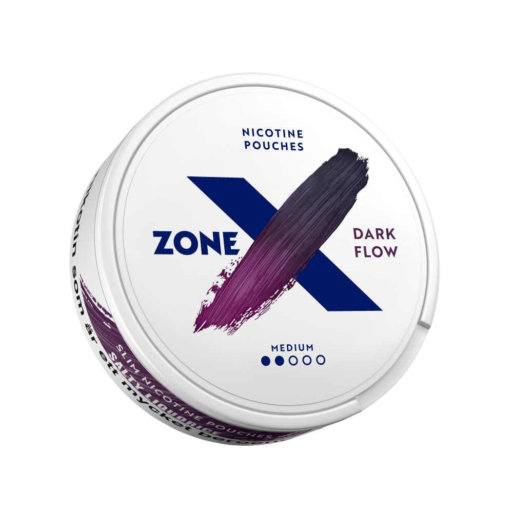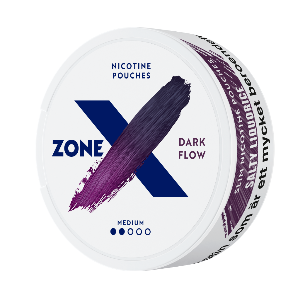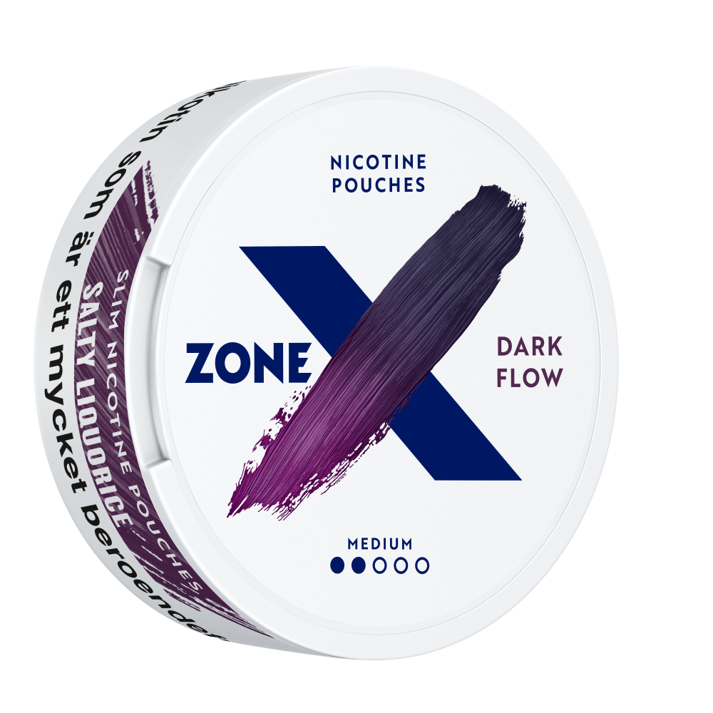 - ZONE X Dark Flow med nordisk lakrits som först ger dig en intensiv salt smak och sedan övergår i en lite mjukare och sötare smak med tiden, med ett milt sting.